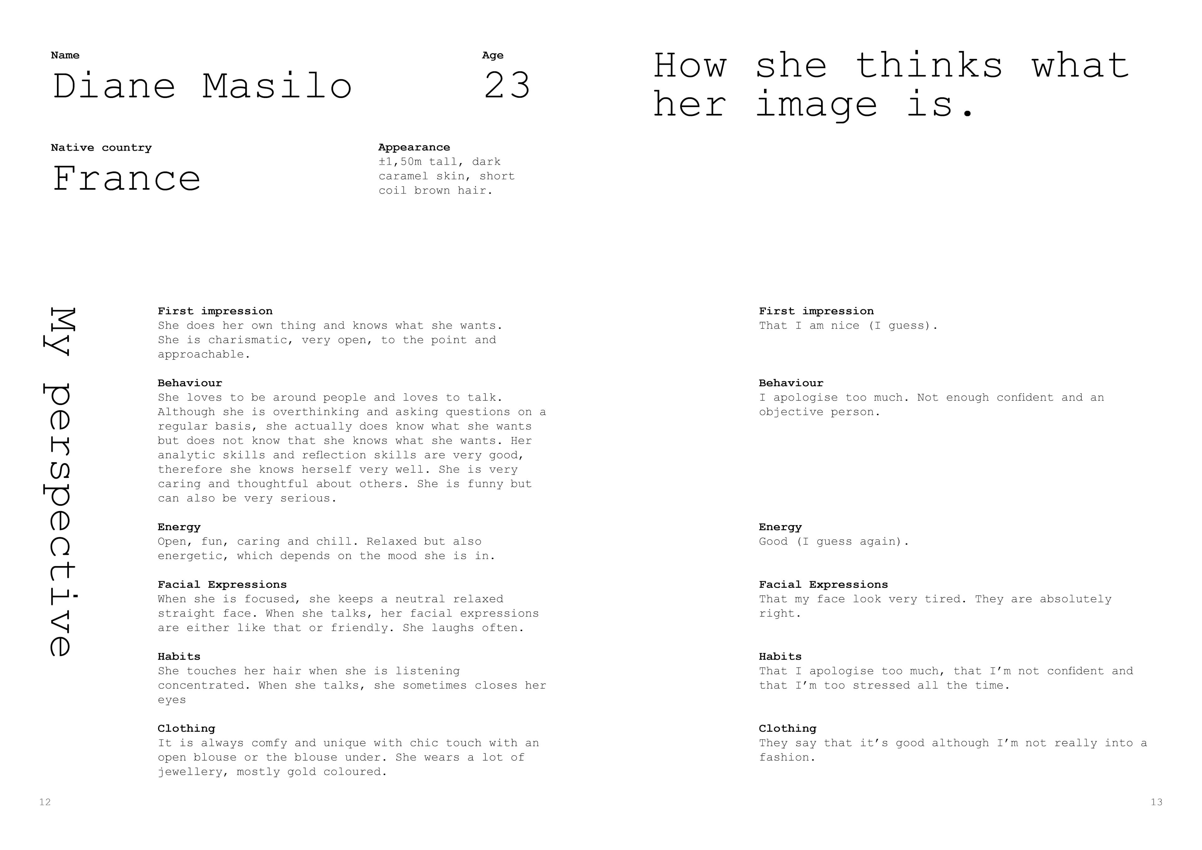 Your first impression of someone can be totally different from how you know someone right now. That says a lot about a person. Are they open or closed? Do they come across confident, or are they actually very insecure? Those questions are answered by this collective portrait of 20 individuals.