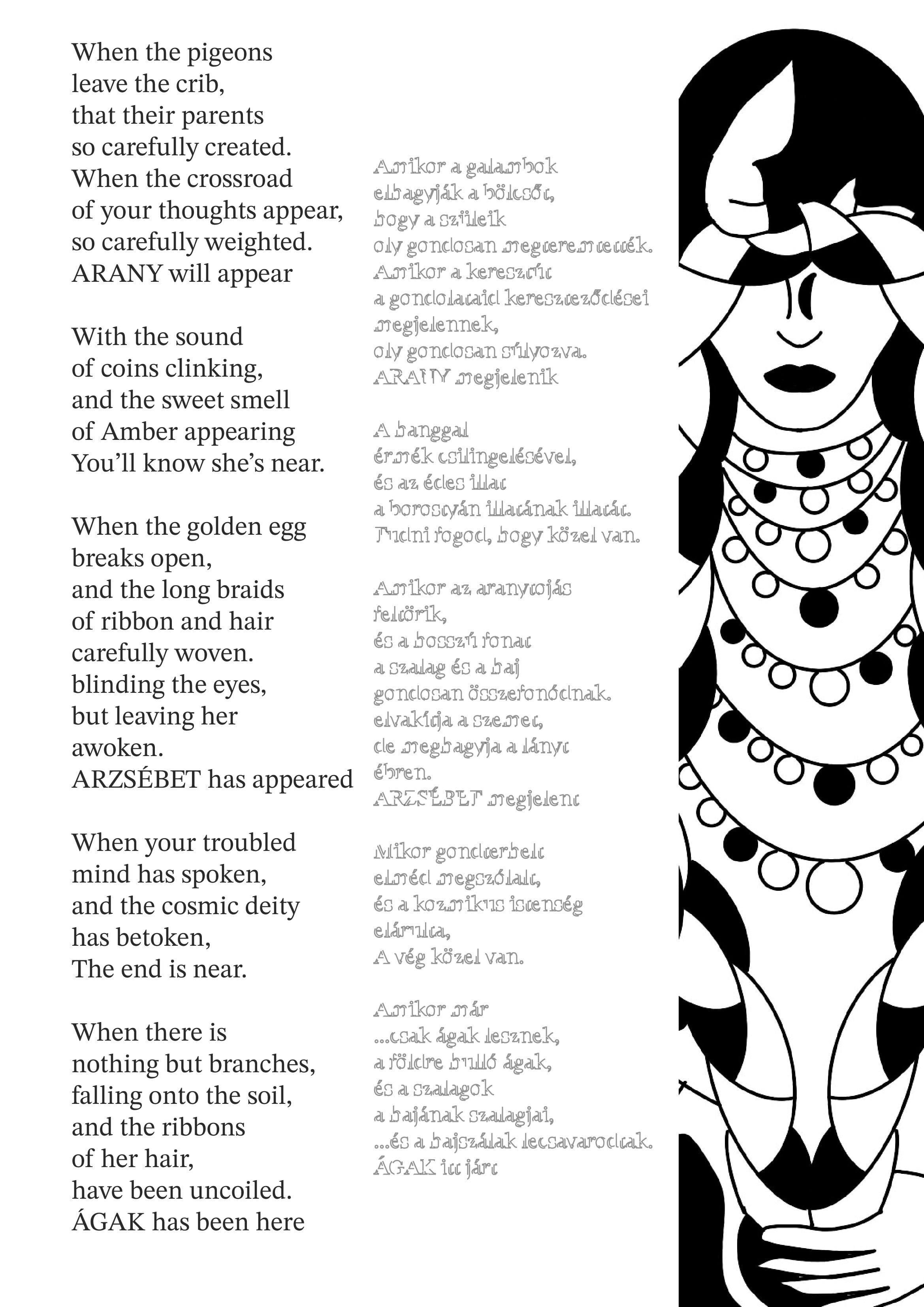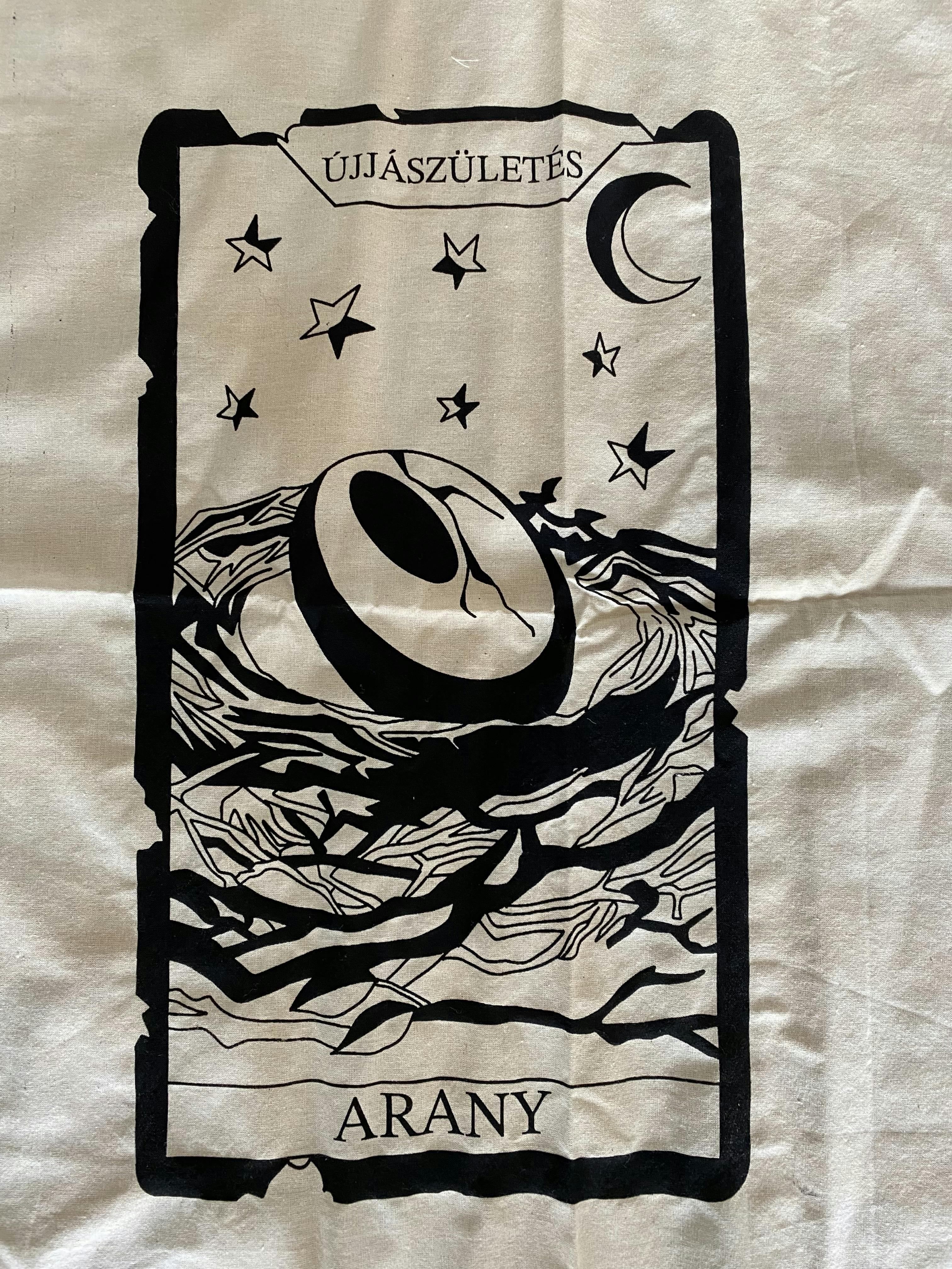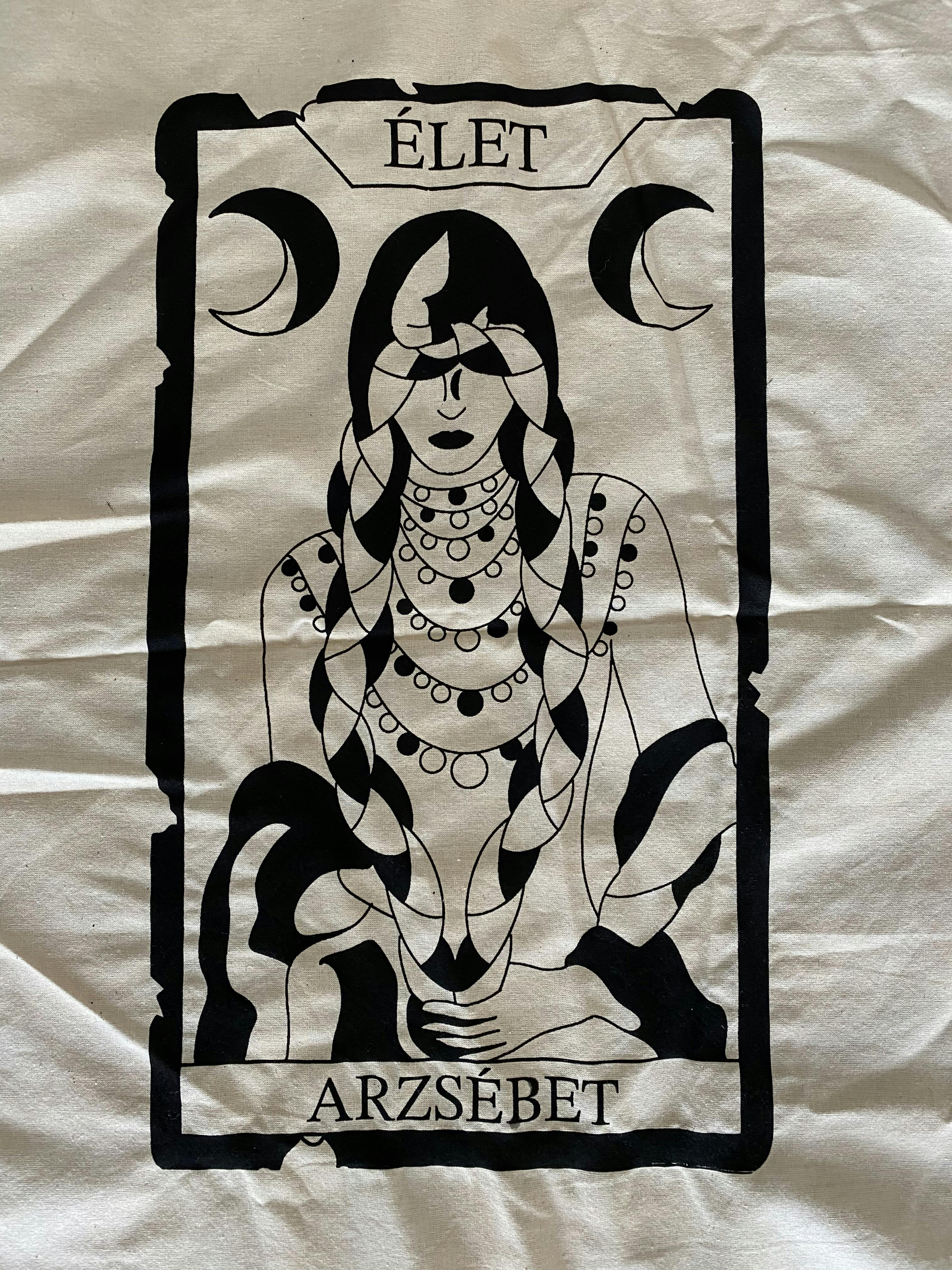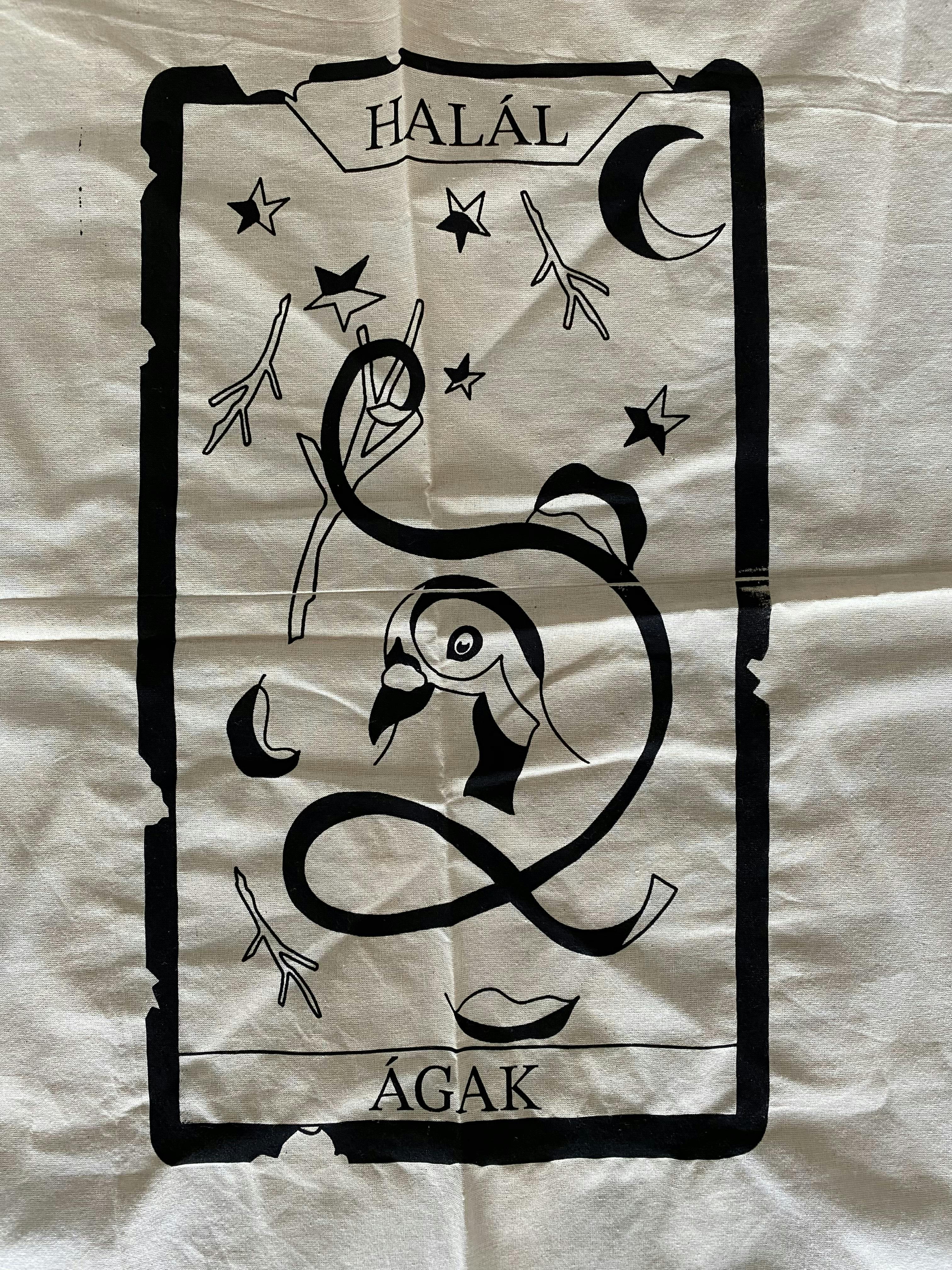 For this project I wrote a new myth about a new triple deity and her (re)birth. This deity is inspired by Roma/Romani and Hungarian symbolism. To support my written myth I designed imagery to showcase all three of her appearances. This I hand printed with a silkscreen on pieces of cloth.