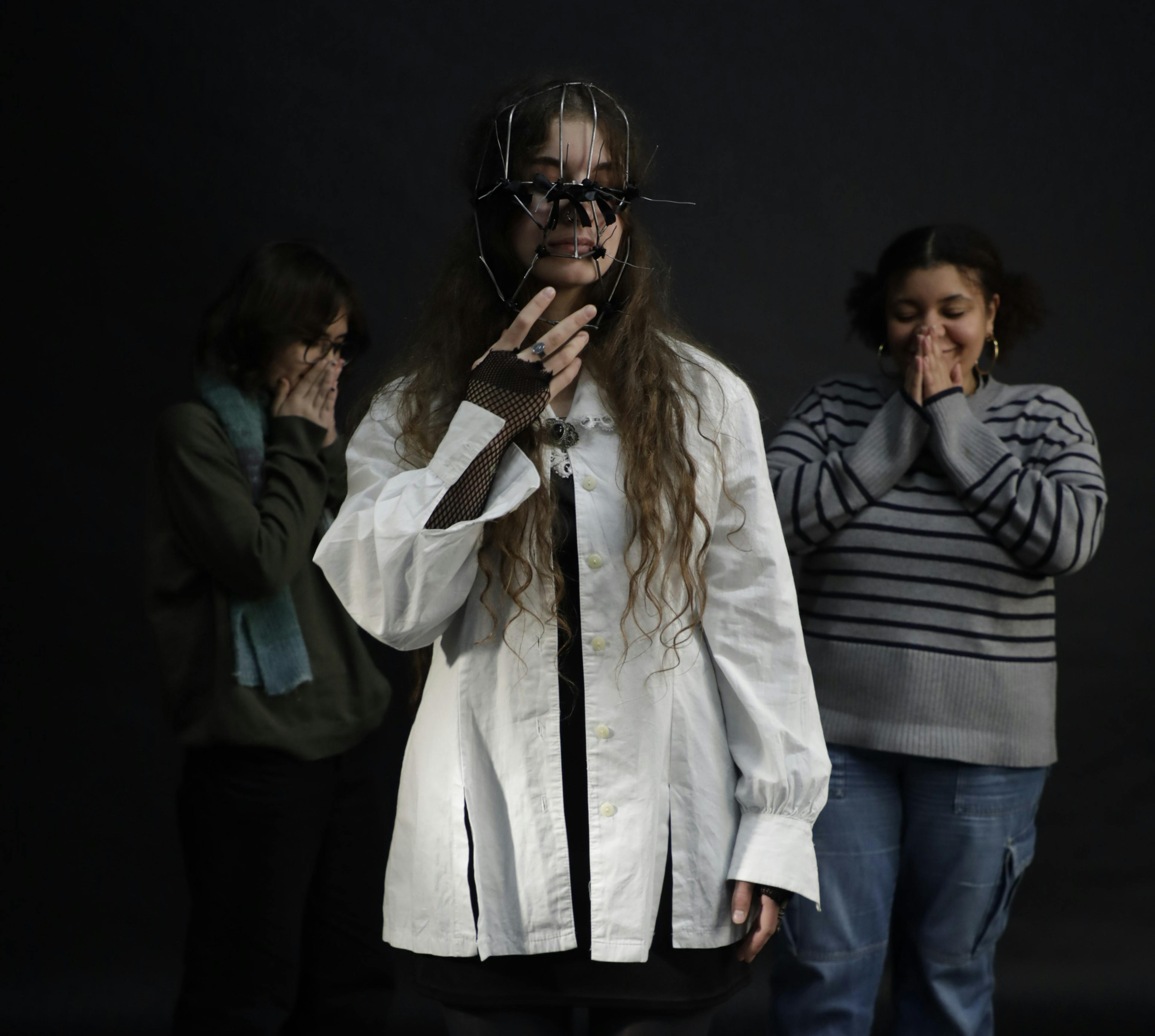 A photo series regarding the question: "Do you take away someone else's territory by claiming your own?" Thinking about this question made me realise that you're always taking away someone's territory by expanding your own. Whether it's big or small, important or not. To symbolise this question I created a metal mask, inspired my medieval shame masks, adorned with spikes and ribbons. This creates an interesting visual contrast that symbolises the different human emotions and behaviours. By looking at this photo series, different questions can arise. Is the wearer closing out people? Or is she being closed out by the people around her. Those questions can lead to interesting conversations and to new insights.